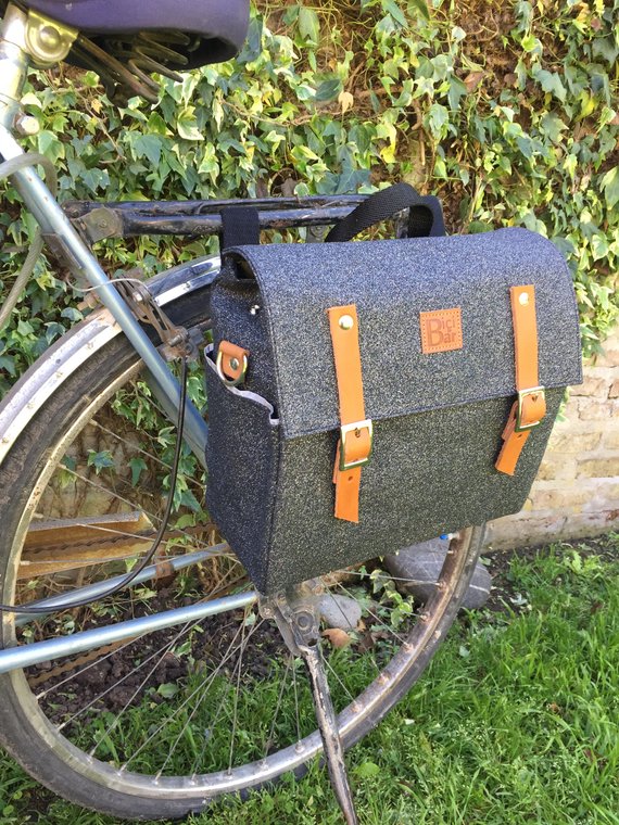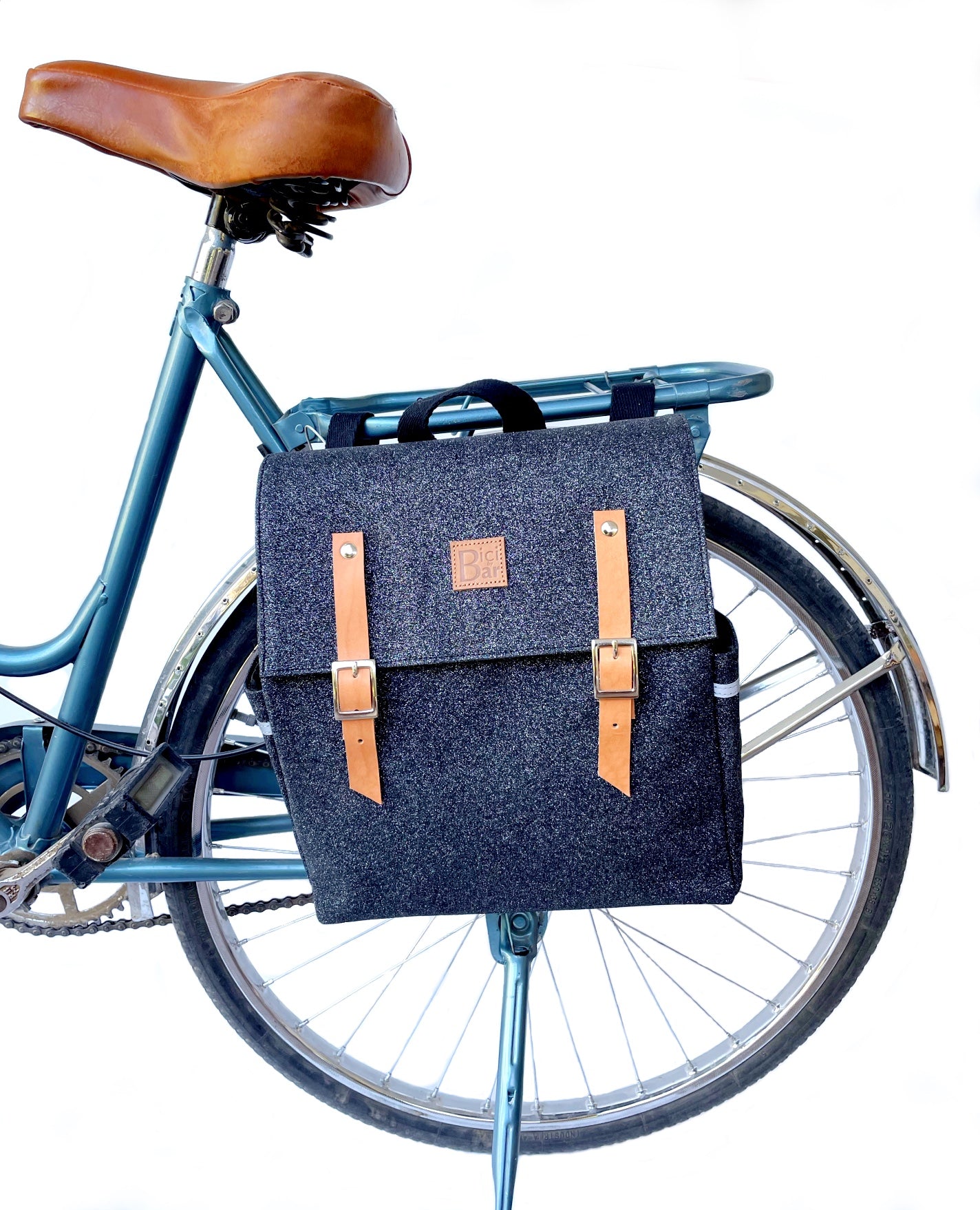 Esta alforja para bicicleta esta diseñada en lona y cuero ideal para transportar tus pertenencias mientras andas en bicicleta. Tiene una parte superior abierta para facilitar la carga y se convierte en un mensajero con las correas para los hombros adicionales. Tiene un bolsillo interno.