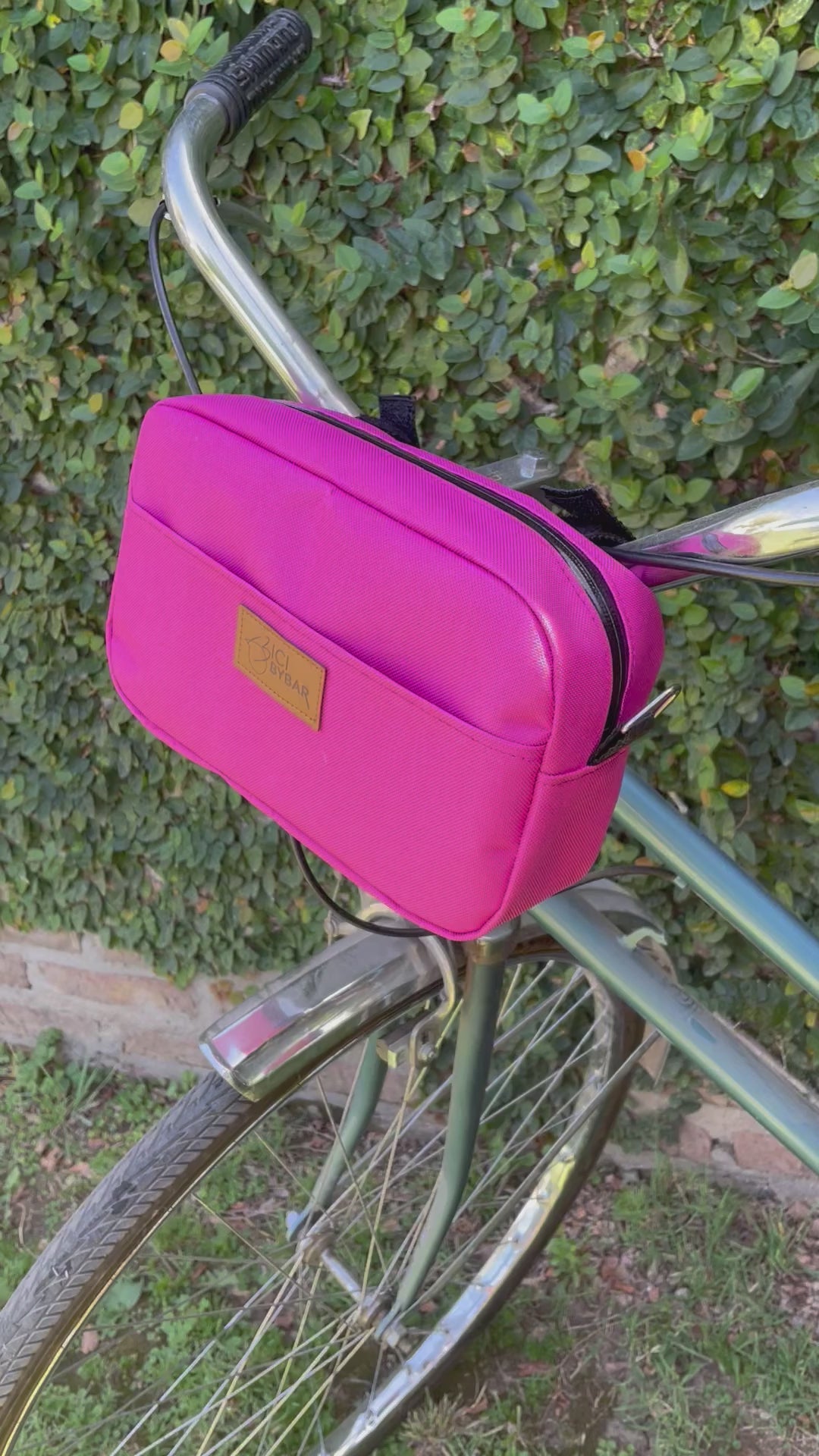 La cartera de bicicleta está hecha a mano en cordura impermeable. Tiene un compartimento interior y un bolsillo exterior.  Tiene un tamaño perfecto para el manillar de tu bicicleta y es espacioso. Perfecto para llevar el móvil, la cartera, las llaves o las herramientas de tu bicicleta. También se convierte en bandolera para llevar la bicicleta.